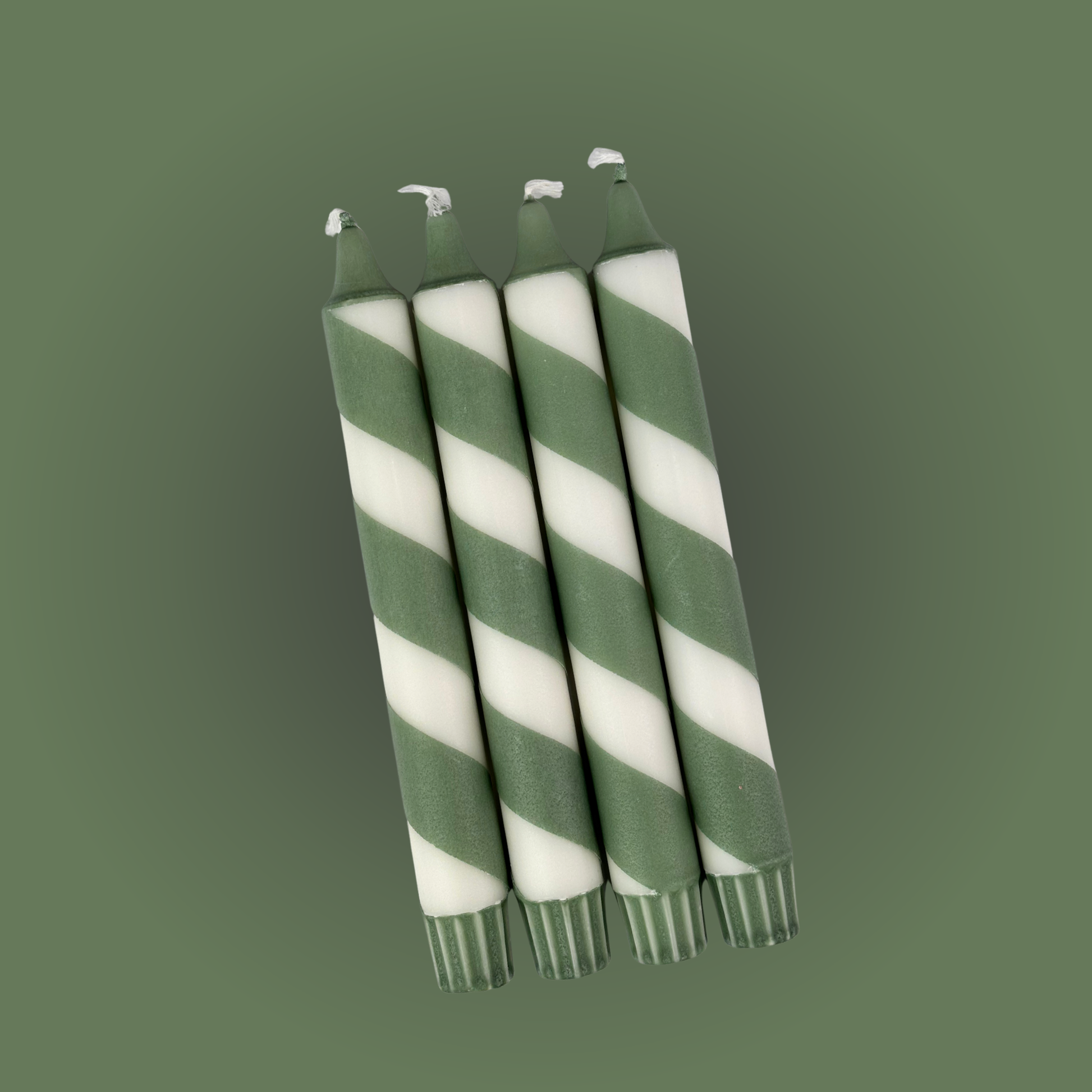 Grøn / Hvid stribet stearinlys